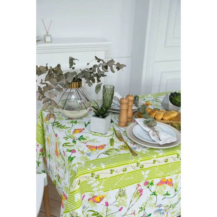 Приятная на ощупь скатерть из 100%-ного хлопка станет настоящей находкой для хозяйки! Материал-рогожка, из которого выполнено изделие, имеет плотную и упругую структуру, обладает высокой прочностью и на ура справляется с первостепенными задачами: