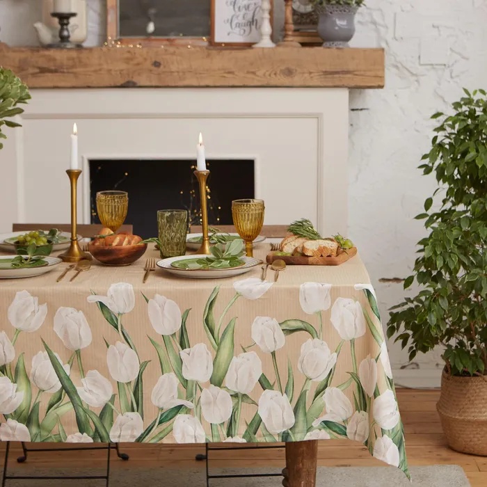Скатерть "Этель" Белые тюльпаны 149х110см, 100% хл, саржа 190 г/м2 — Характеристики