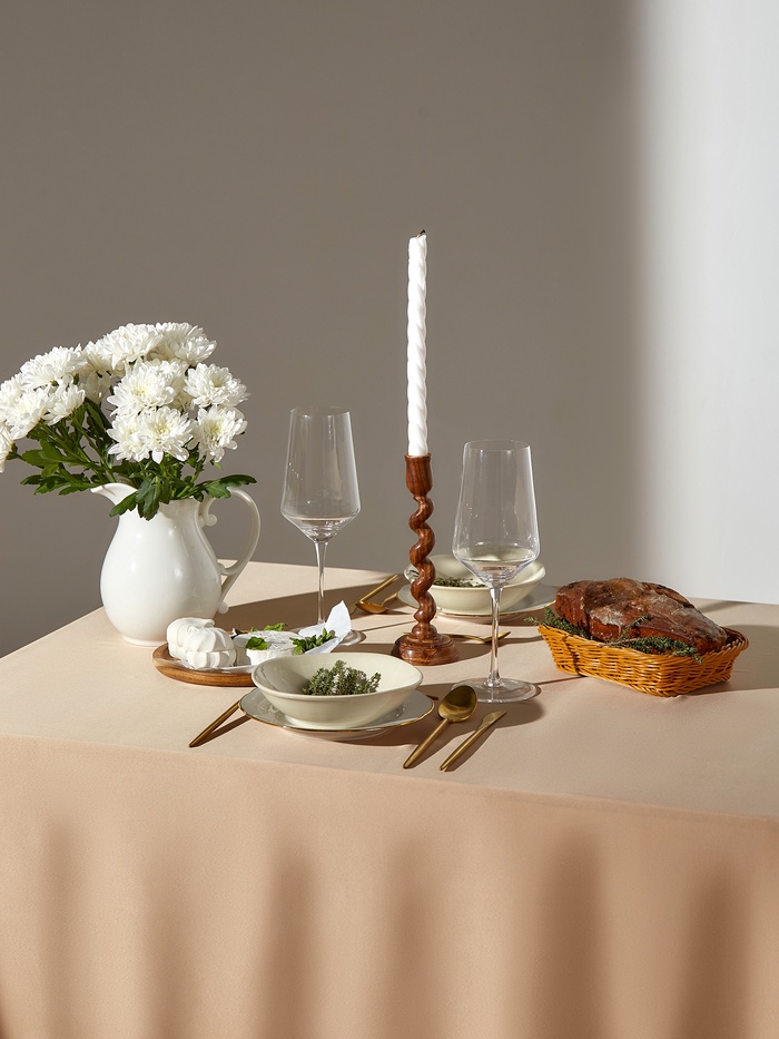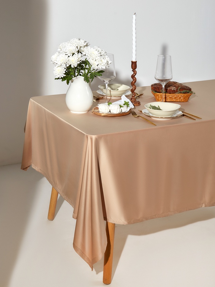 Хотите оформить стол стильно и изящно? Скатерть «Этель» Gentle бежевого оттенка с сатиновым блеском станет идеальным фоном как для ежедневных трапез, так и для торжественных застолий.