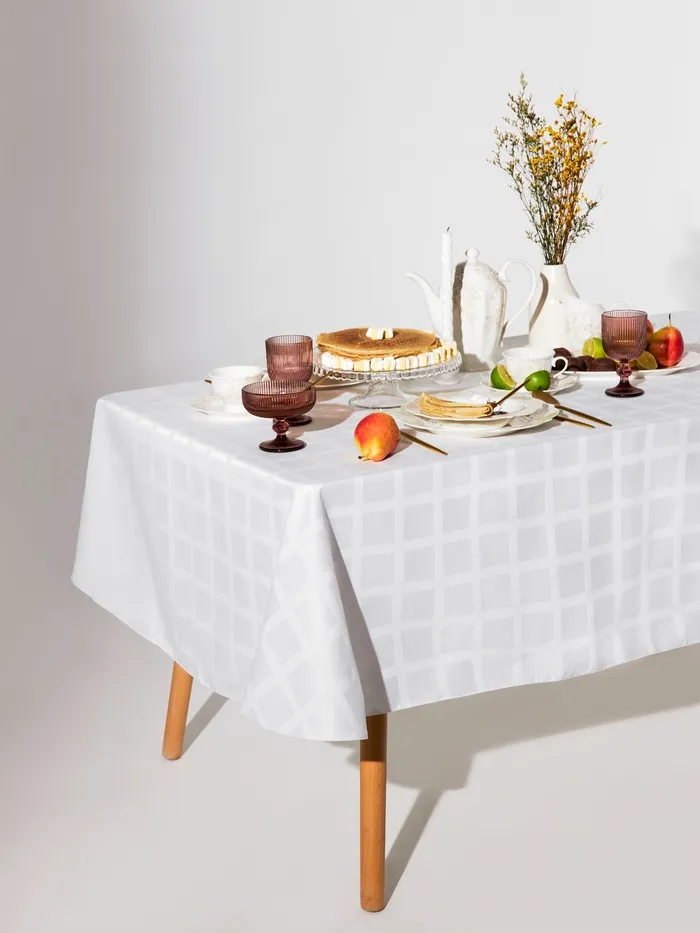 Скатерть "Этель" Geometry овал 150*220 +/-3см, цв.белый, пл. 192 г/м2, хл с ВГМО — Характеристики