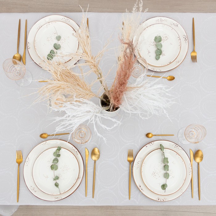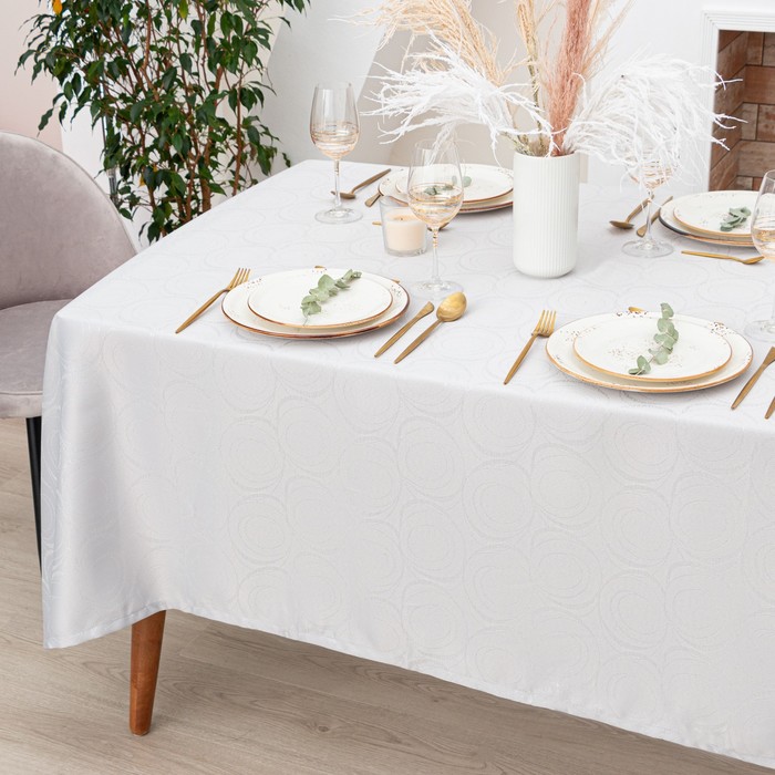 Скатерть «Этель. Круги», серебро, 142×180 +/-3 см, 115±10 г,100% п/э — Характеристики