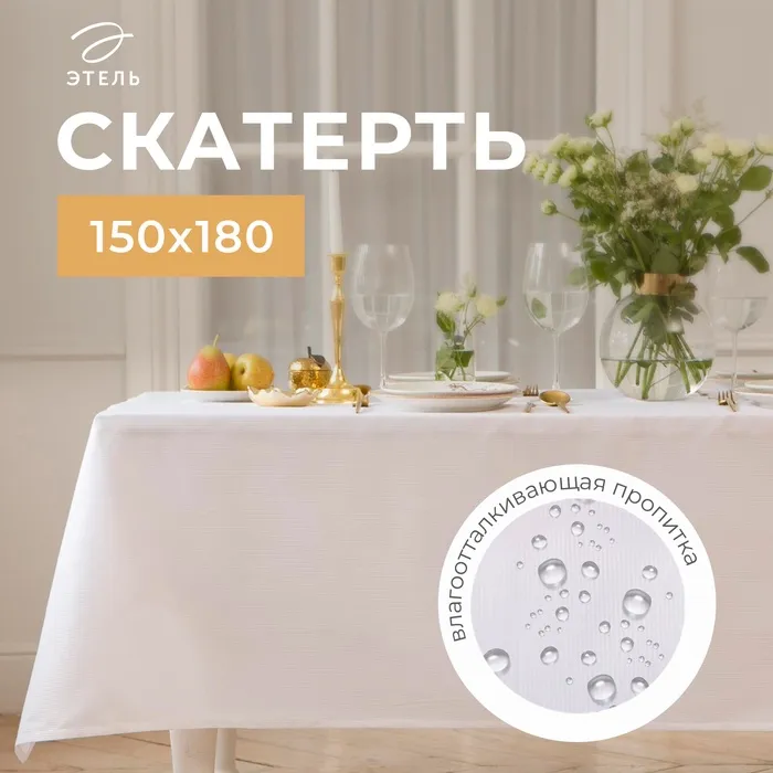 Скатерть Этель Lines, 150×180 +/-3 см, белая, плотность 192 г/м², хл с ВГМО — Характеристики