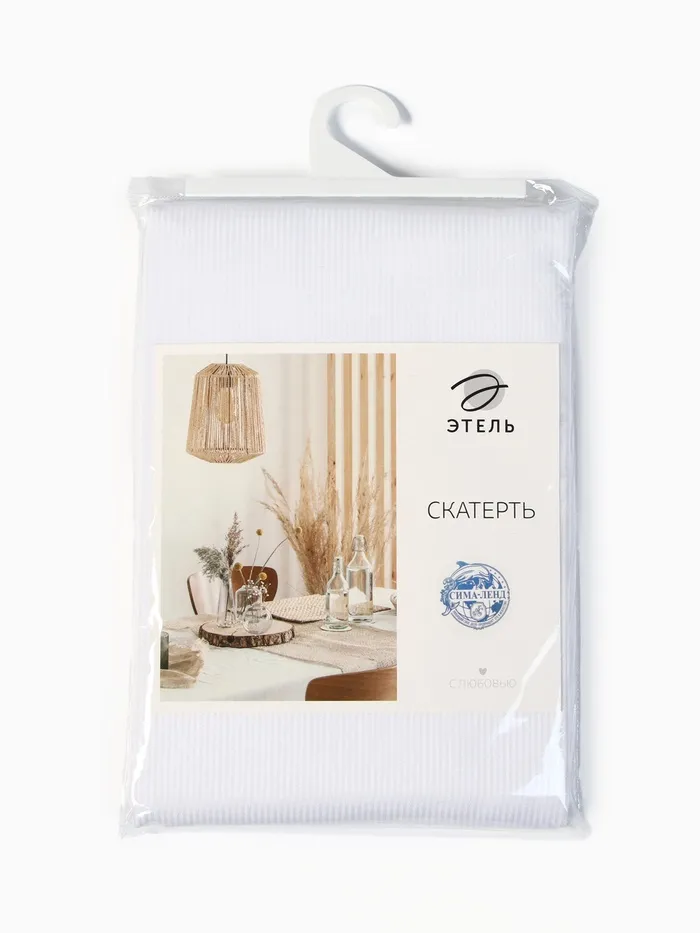 Скатерть Этель Lines, овал 150×220 +/-3 см, белая, плотность 192 г/м², хлопок с ВГМО — Характеристики