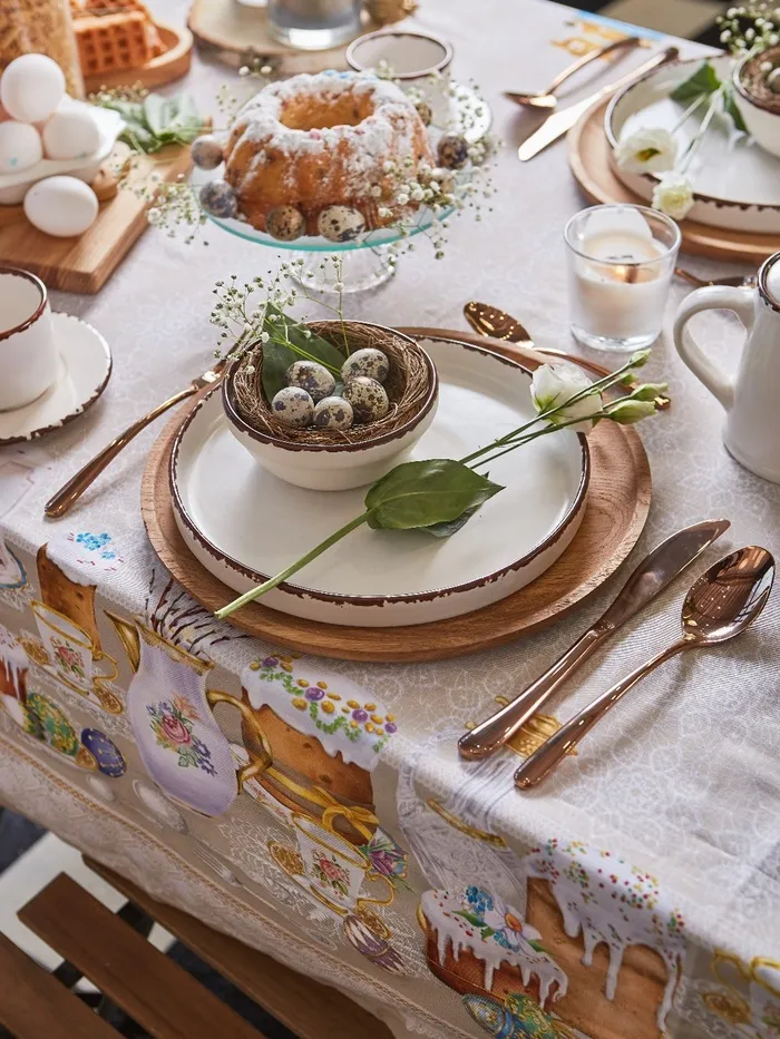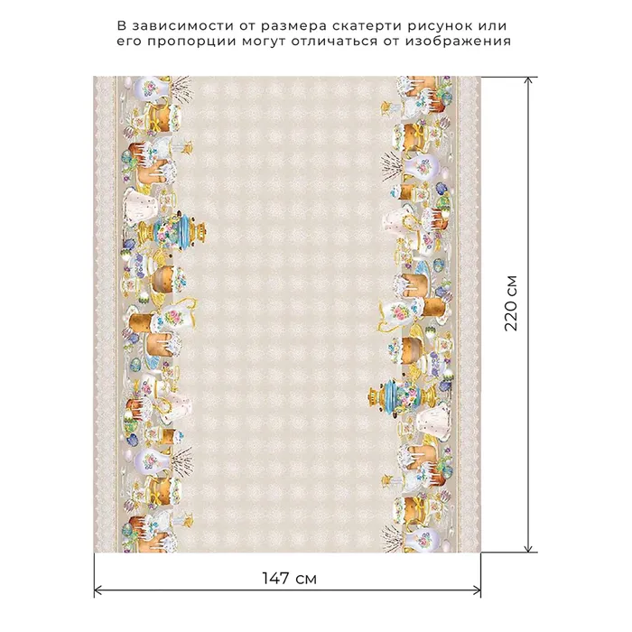 Скатерть Этель «Пасхальные куличи» 220×147 см, 100% хлопок, саржа 190 г/м² — Характеристики