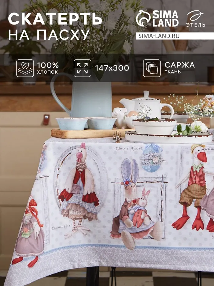 Скатерть «Этель. Пасхальные Тильды», 147×300 см, 100% хлопок, саржа 190 г/м² — Характеристики