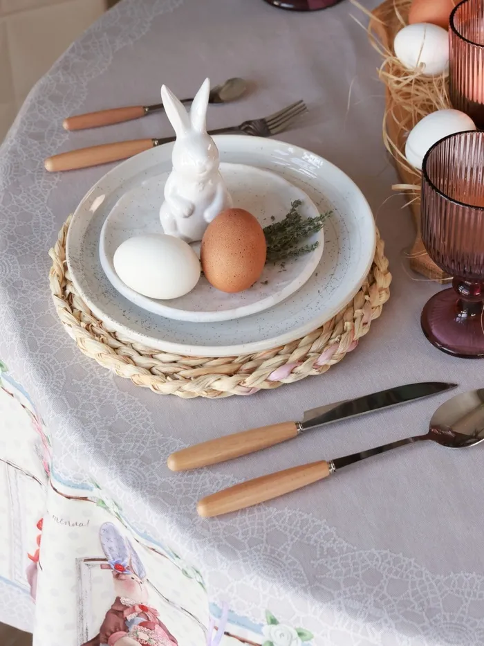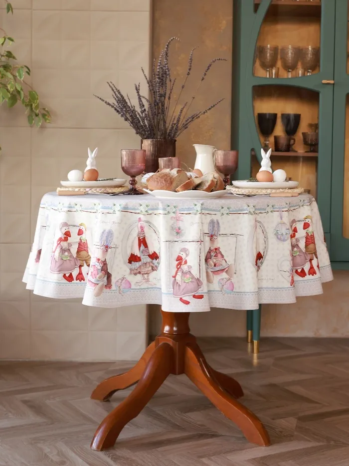 Скатерть "Этель" Пасхальные Тильды d=148 см, 100% хл, саржа 190 гр/м2 — Характеристики