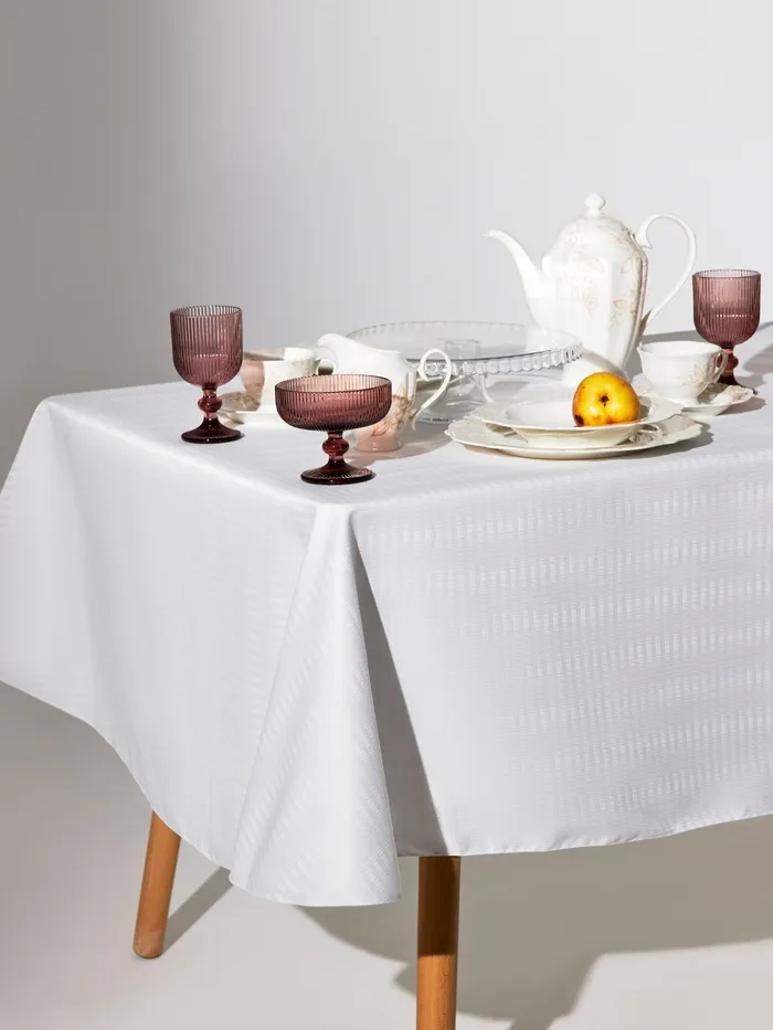 Скатерть "Этель" Shine овал 150*220 +/-3см, цв.белый, пл. 192 г/м2, хл с ВГМО — Характеристики