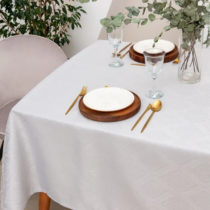 Скатерть «Этель. Винтаж», серебро, 142×283 +/-3 см, 115±10 г,100% п/э — Характеристики