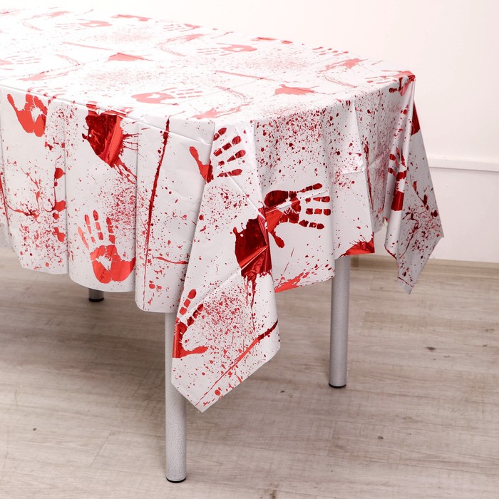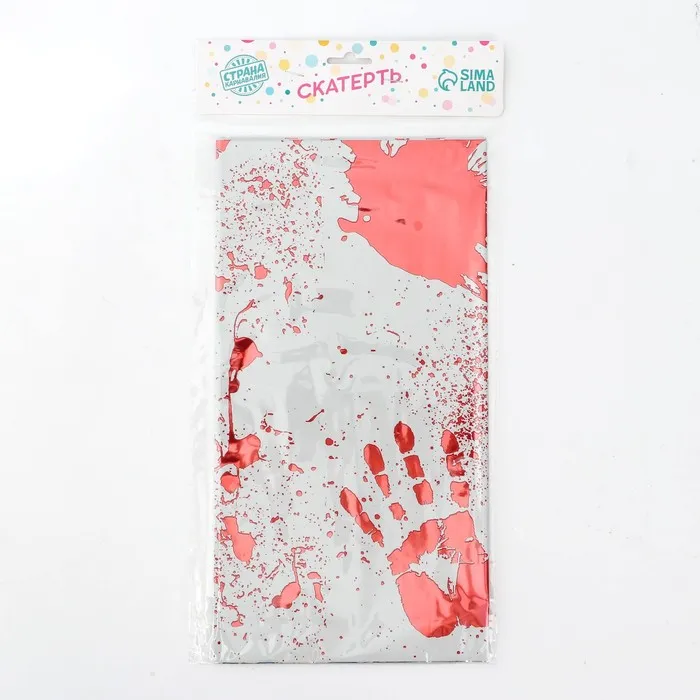 Скатерть размером 137 × 183 см — это оригинальный элемент декора для тематических вечеринок, особенно на Хэллоуин. Яркий рисунок бурых следов с отпечатками ладоней на белом фоне создаст устрашающую атмосферу и сделает вашу вечеринку по-настоящему запоминающейся. Скатерть подойдёт для небольших и средних столов, изделие удобно использовать как внутри помещения, так и на улице.