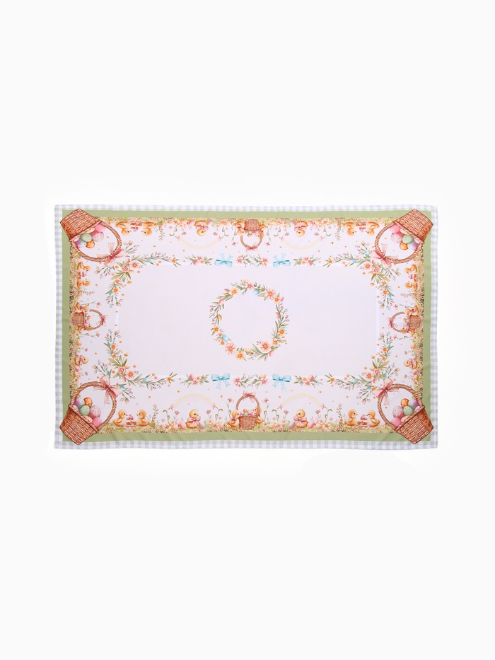 Эта скатерть — для тех, кто помнит: главное в Пасхе — не сервировка, а то, как все собираются за одним столом. Она не требует идеальной укладки, не боится капли варенья и не отвлекает от разговоров. Просто лежит — и делает момент чуть светлее. Как первый луч в окне утром. Как детский смех за стеной. Как “ещё один кусочек?” — и все снова за столом.