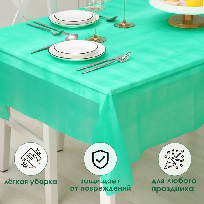 Скатерть на стол Доляна «Праздничный стол», 137×183 см, толщина 30 мкм, зелёная — Характеристики
