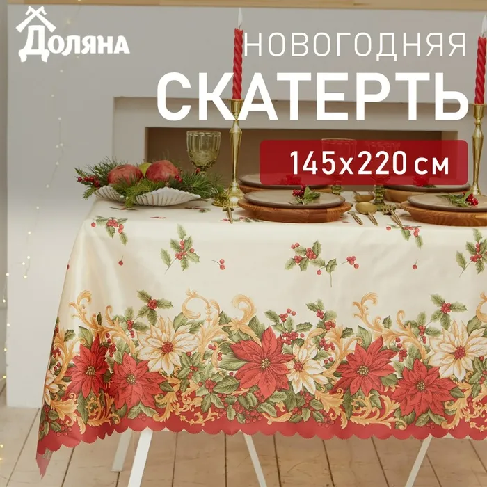 Скатерть новогодняя Доляна "«Новогоднее настроение»" 145*220 см, 100% п/э — Характеристики