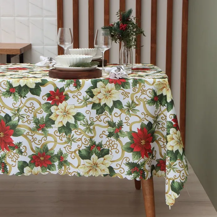Скатерть новогодняя Доляна "Праздничные украшения" 145*180 см, 100% п/э — Характеристики