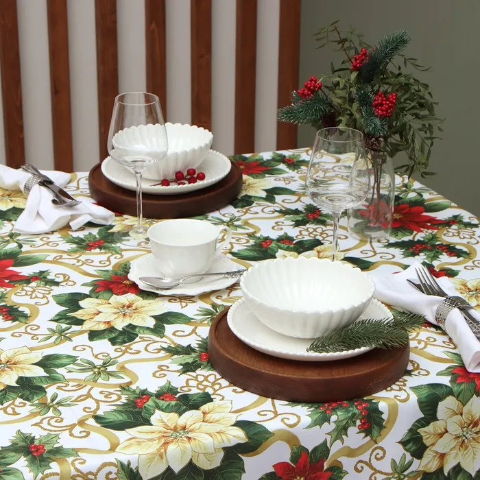 Скатерть новогодняя Доляна "Праздничные украшения" 145*260 см, 100% п/э — Характеристики