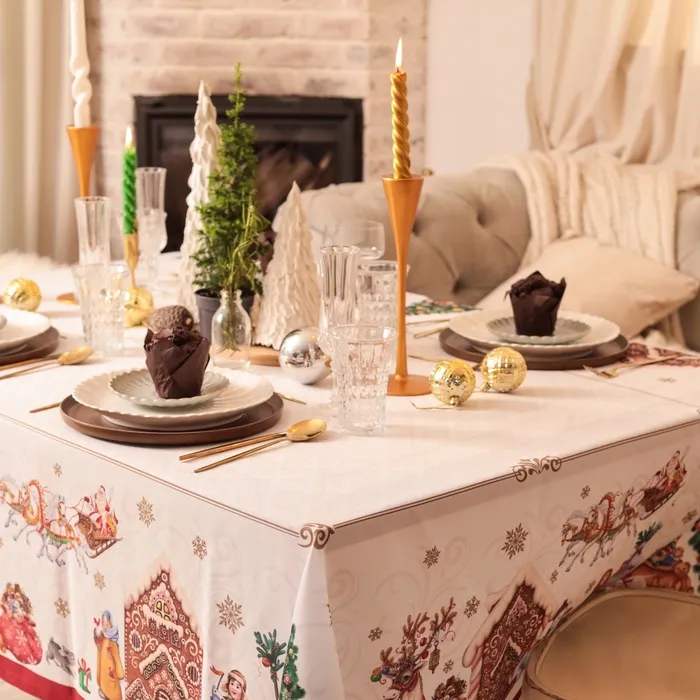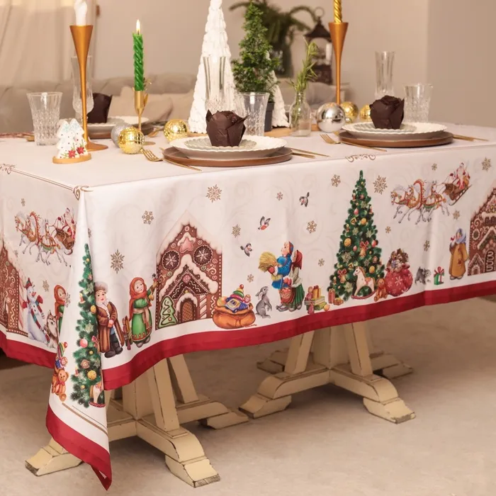 Скатерть новогодняя Доляна "Радостные моменты" 145х180 +/- 3 см, 100% п/э — Характеристики
