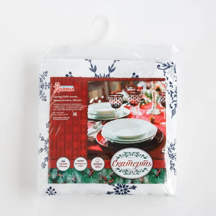 Скатерть новогодняя "Доляна" Синие снежинки 180х146 +/- 3 см, 100% хлопок, 164 г/м2 — Характеристики