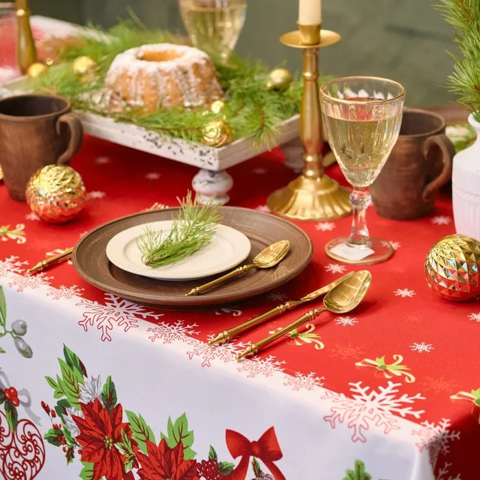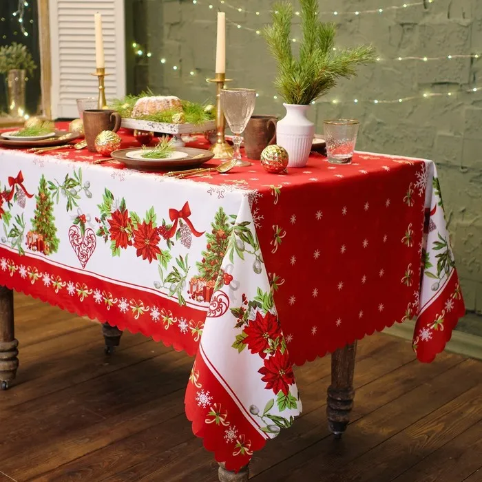 Скатерть новогодняя Доляна "Уютный праздник" 145*260 см, 100% п/э — Характеристики