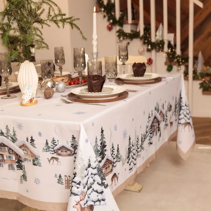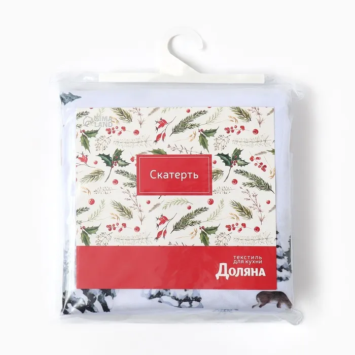 Скатерть новогодняя Доляна "Зимний лес" 145*215 +/- 3 см, 100% п/э — Характеристики