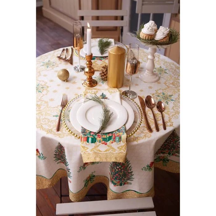 Скатерть новогодняя "Этель" Golden Christmas d=150 +/- 3см с ГМВО, 100%хл, саржа 190 гр/м2 — Характеристики