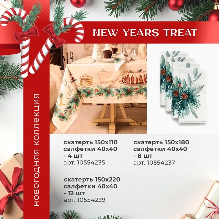 Скатерть новогодняя "Этель" New Years treat 150х180см +/-3см с ВГМО, 100%хл, саржа 190гр/м2 — Характеристики