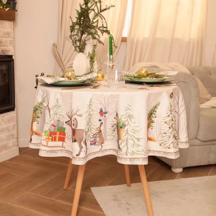 Скатерть новогодняя "Этель" "Новогоднее чудо" d=220см +/-3см с ВГМО, 100%хл, саржа 190гр/м2 — Характеристики