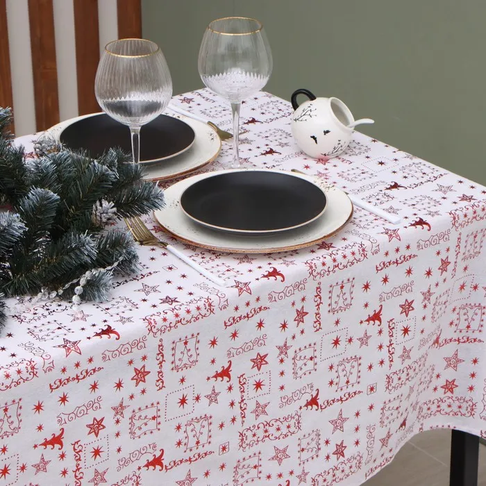 Скатерть новогодняя "Этель" Новогодняя 140*180 ±5 см, 80% п/э 20% лен, 120гр/м2 — Характеристики