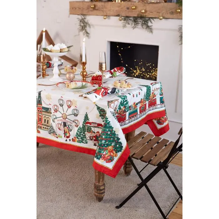 Скатерть новогодняя "Этель" "Новогодняя ярмарка" Скатерть новогодняя 150*110 +/-3 см с ГМВО, 100%хл, 190г/м2