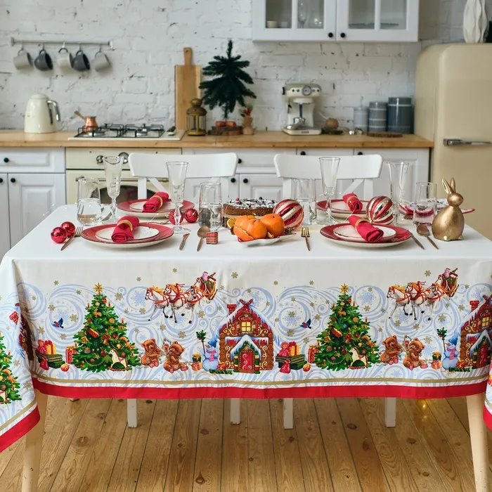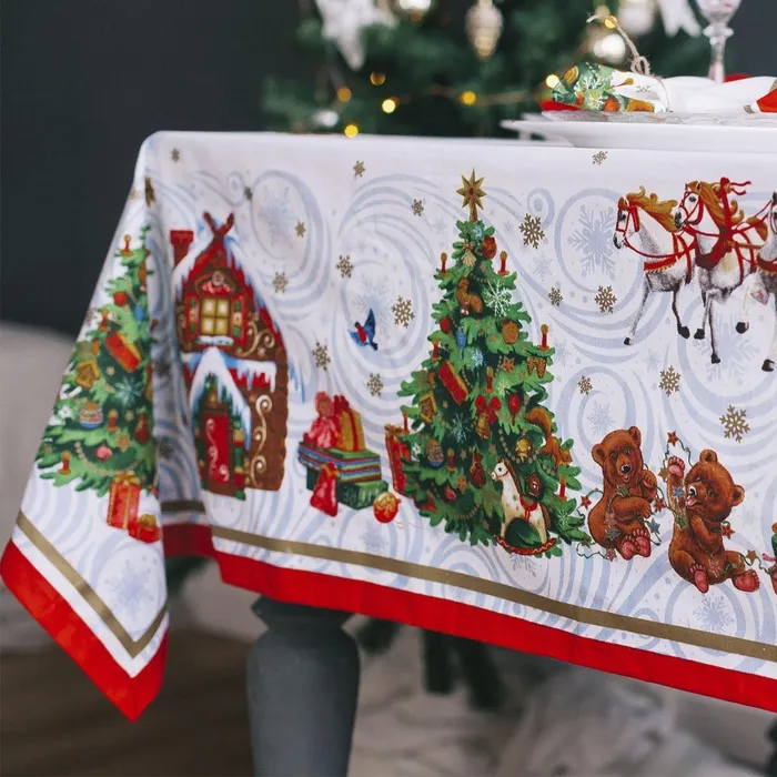 Скатерть новогодняя "Этель" "Новогодняя сказка" 150х110см +/-3см с ГМВО, хл100% — Характеристики