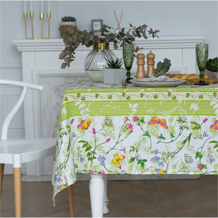 Столовый набор украсит праздничный интерьер. Изделия с эксклюзивным принтом сшиты из хлопкового полотна. Этот материал имеет плотную и упругую структуру, обладает высокой прочностью и на ура справляется с первостепенными задачами:
