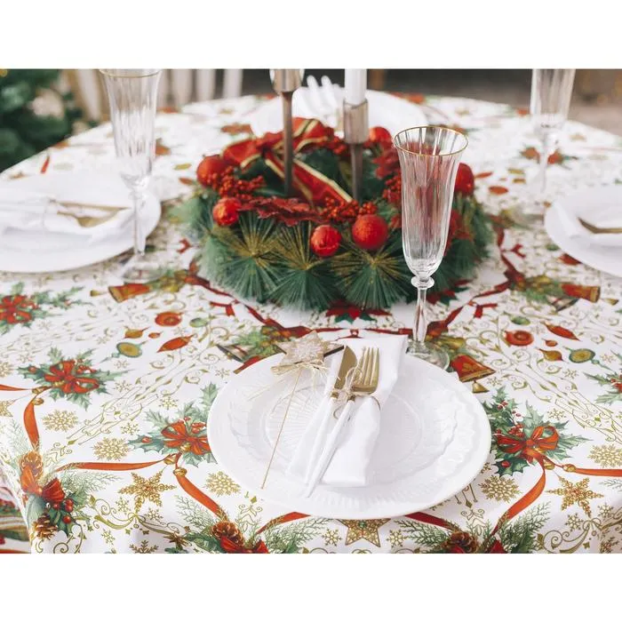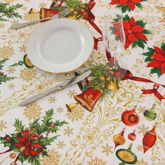 Скатерть новогодняя "Этель" "Новогодние игрушки" d=160см /-3см с ГМВО, хл100% — Характеристики