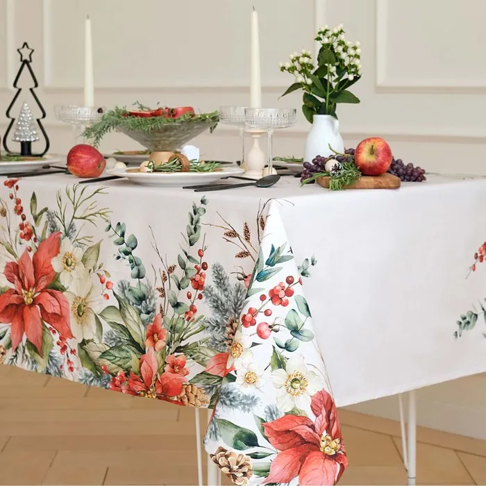 Скатерть новогодняя "Этель" "Пуансетия" 149х250 см, 100% хл, саржа 190 г/м2 — Характеристики