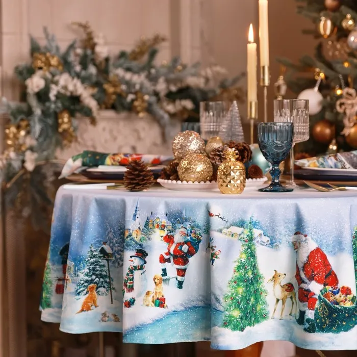Скатерть новогодняя "Этель" "Рождественский вечер" d=150 см, 100% хл, саржа 190 г/м2 — Характеристики