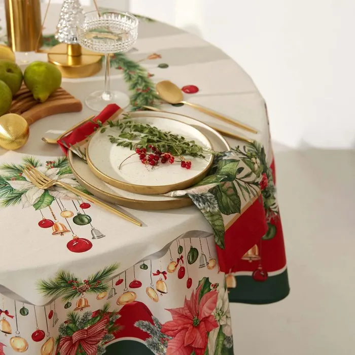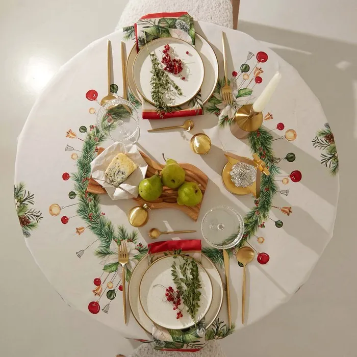 Скатерть новогодняя "Этель" "Рождественский венок" d=150 см, 100% хл, саржа 190 г/м2 — Характеристики