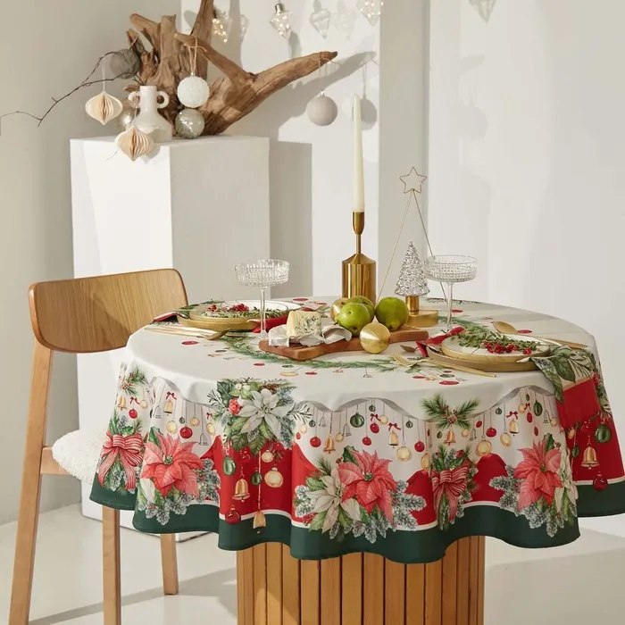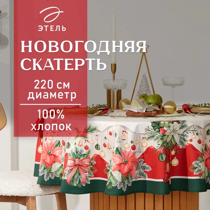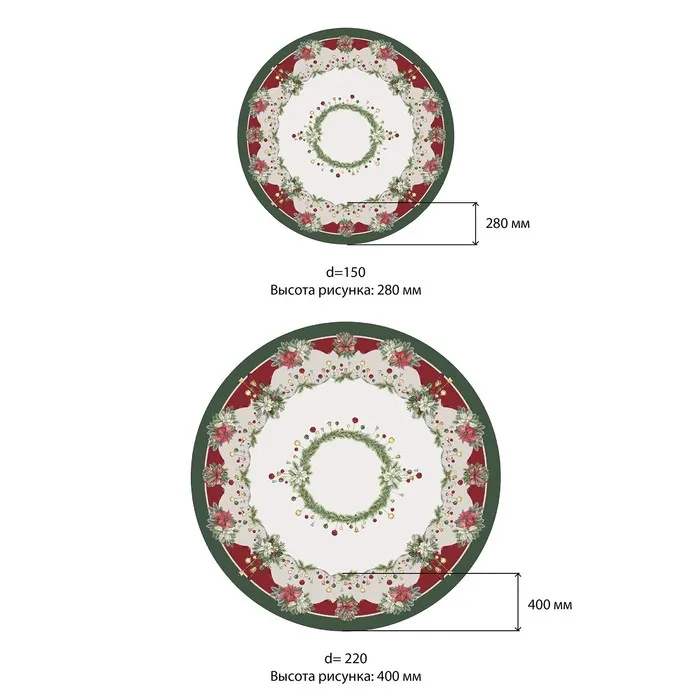 Скатерть новогодняя Этель "Рождественский венок" d=220 см, 100% хл, саржа 190 г/м2 — Характеристики