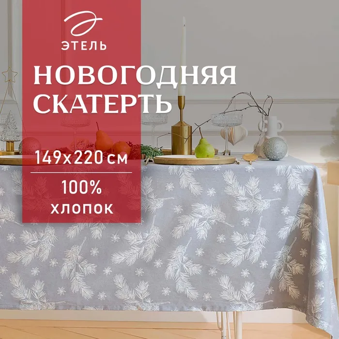 Скатерть новогодняя "Этель" "Серебряные ветки" 149х220 см, 100% хл, саржа 190 г/м2 — Характеристики