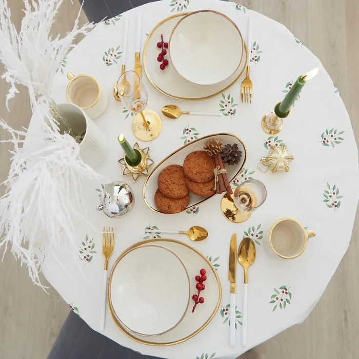 Скатерть новогодняя "Этель" "Сhristmas bells" d=220 +/- 3см с ГМВО, 100%хл, саржа 190 гр/м2 — Характеристики