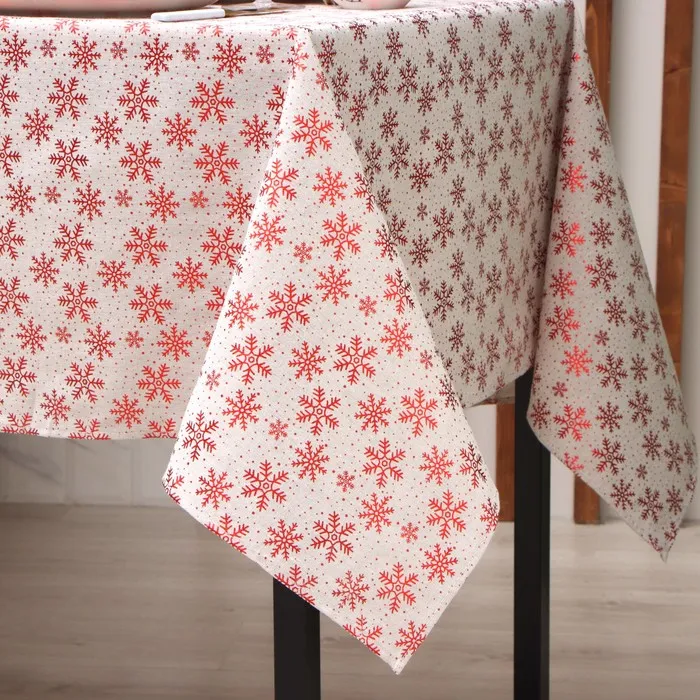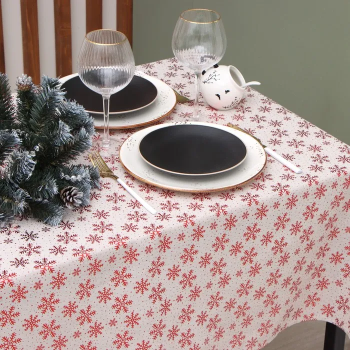 Скатерть новогодняя "Этель" Снежинки 100*140 ±5 см, 80% п/э 20% лен, 120гр/м2 — Характеристики