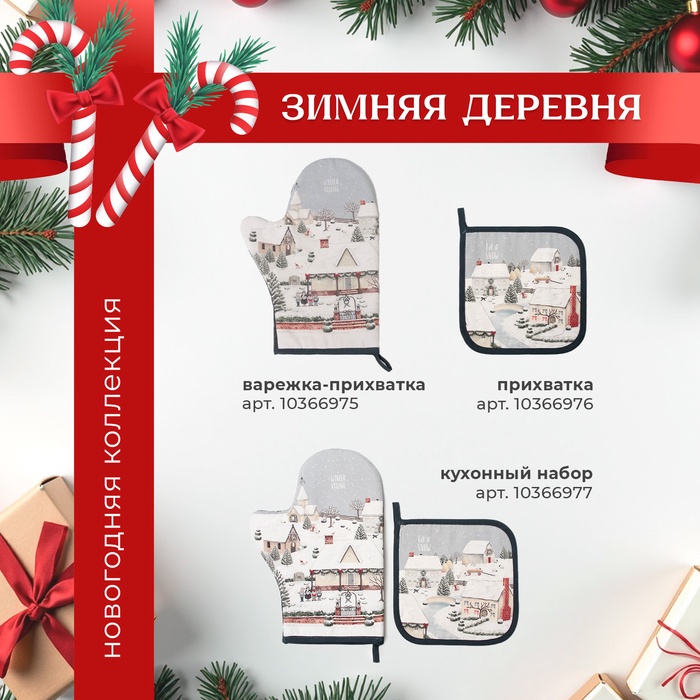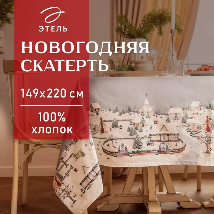 Скатерть новогодняя Этель "Зимняя деревня" 149х220 см, 100% хл, саржа 190 г/м2 — Характеристики