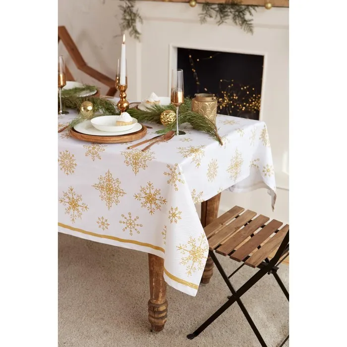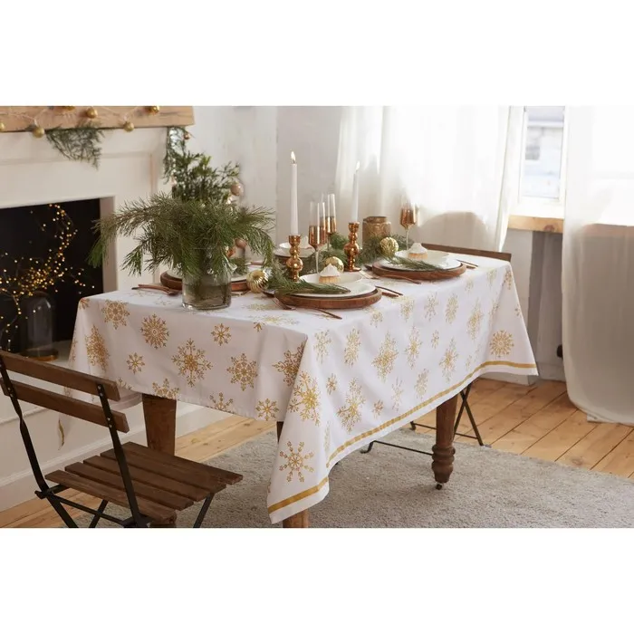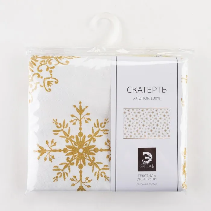 Скатерть новогодняя "Этель" Золотые снежинки 149х250+/- 3см, 100%хл, 190 г/м2 — Характеристики
