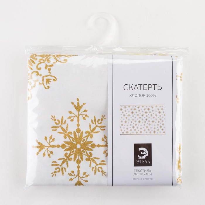 Скатерть новогодняя «Этель. Золотые снежинки», 149×300+/- 3 см, 100% хлопок, 190 г/м² — Характеристики