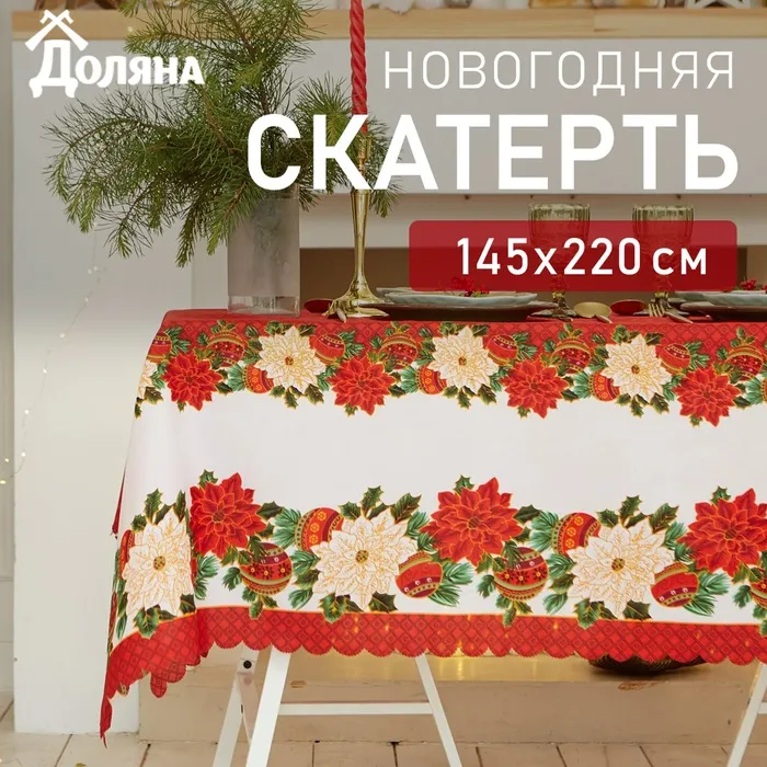 Скатерть новогодняя рогожка DomoVita Чудеса 110х150см, рогожка 170г/м, хл100% — Характеристики