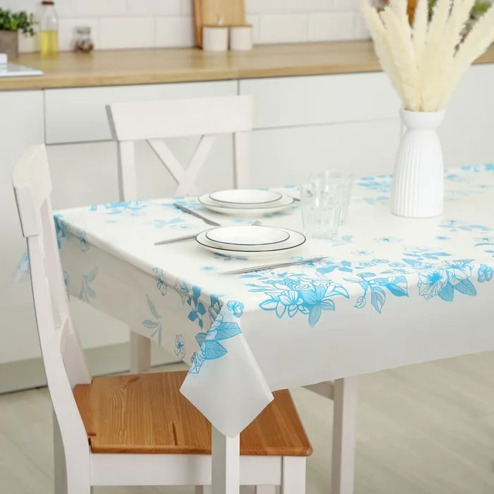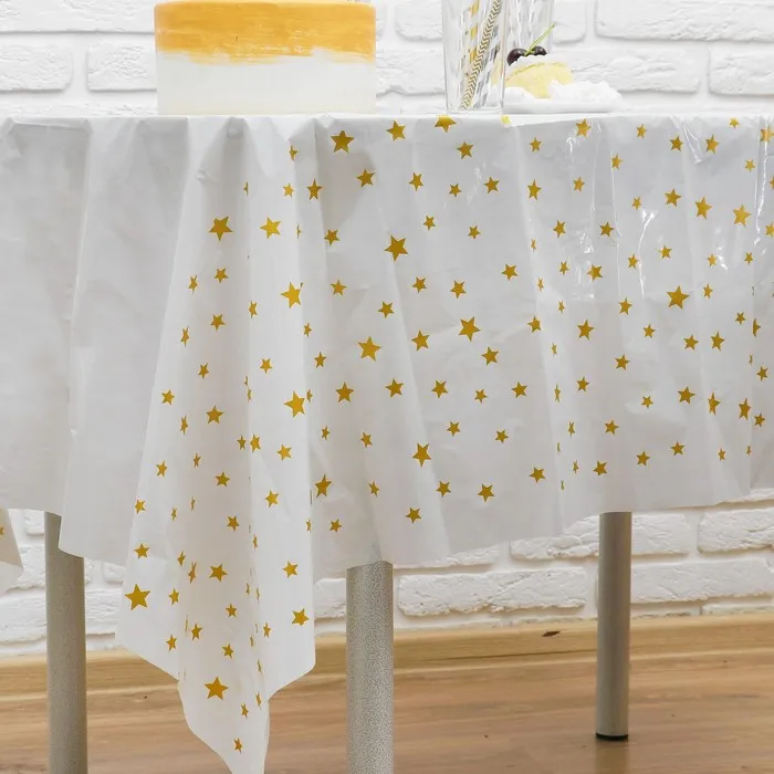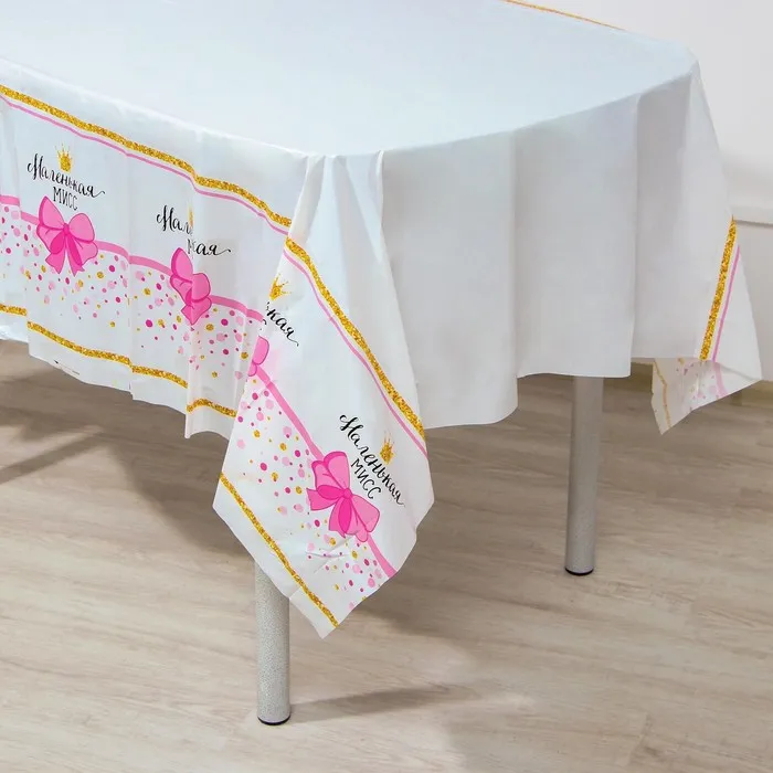 Эта скатерть не только украшение, но и практичный элемент сервировки. Полиэтиленовый материал обеспечивает долговечность и устойчивость к пятнам, а также предотвращает повреждение или загрязнение стола во время праздничных трапез. Она также удобна для использования на улице.