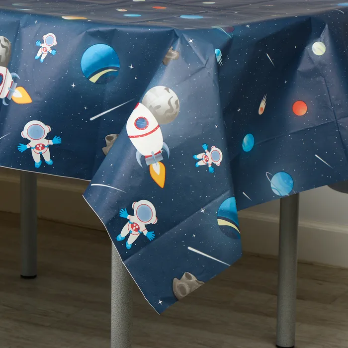 Скатерть «Космос» — это идеальный аксессуар для создания праздничной атмосферы за вашим столом. Универсальный размер позволит накрыть столы различной формы и вместить большое количество гостей.