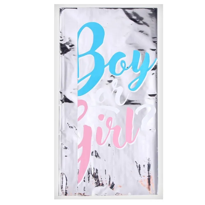 Скатерть одноразовая на гендер-пати Boy or girl, 182×137, фольга, серебро — Характеристики
