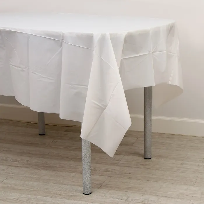 Эта скатерть не только украшение, но и практичный элемент сервировки. Полиэтиленовый материал обеспечивает долговечность и устойчивость к пятнам, а также предотвращает повреждение или загрязнение стола во время праздничных трапез. Она также удобна для использования на улице.