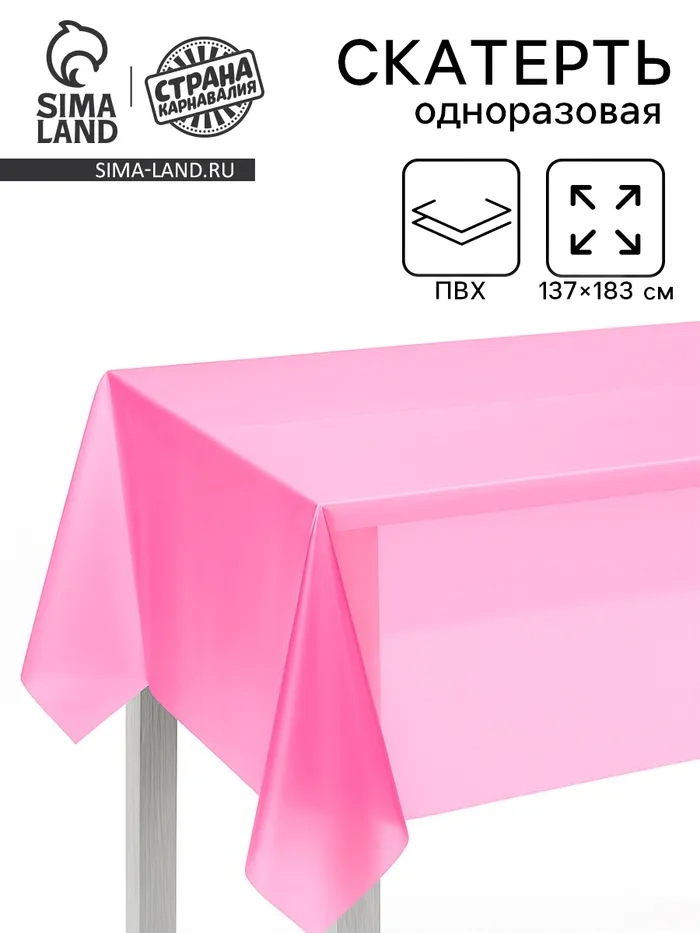 Скатерть одноразовая на стол 137×183 см, розовая — Характеристики