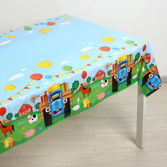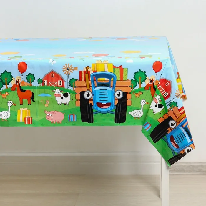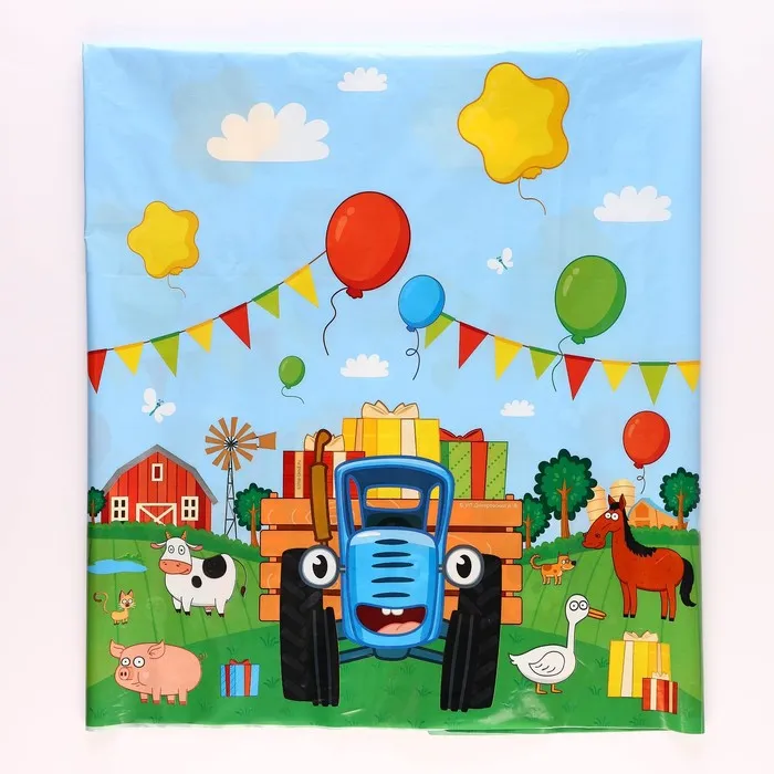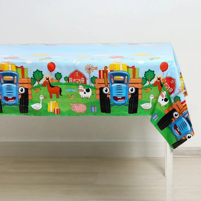 Скатерть одноразовая праздничная 120×180 см, 35 мкр, Синий трактор — Характеристики