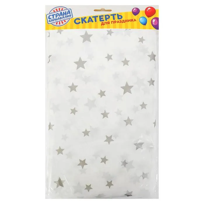 Скатерть со звёздами станет отличным украшением праздничного стола! Яркая расцветка и тематический дизайн добавят сервировке торжественных ноток и разбудят аппетит. Скатерть удобна в использовании: с неё легко удалять пятна, а после застолья не нужно стирать — достаточно просто протереть. Нарядное оформление стола позволит всем гостям настроиться на позитивную волну.