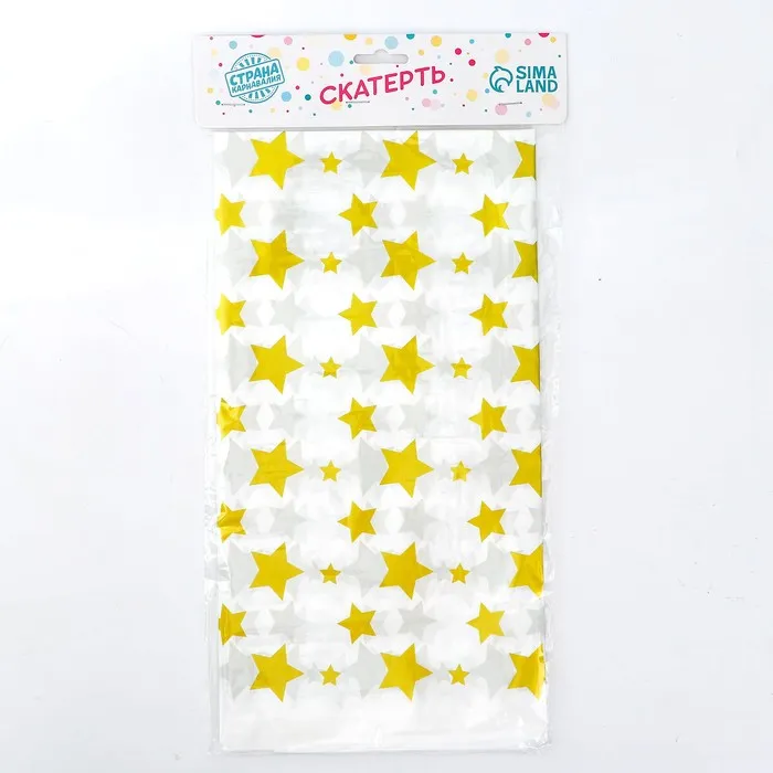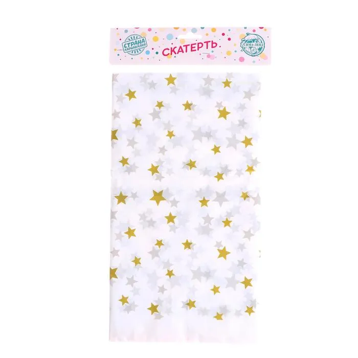 Скатерть со звёздами станет отличным украшением праздничного стола! Яркая расцветка и тематический дизайн добавят сервировке торжественных ноток и разбудят аппетит. Скатерть удобна в использовании: с неё легко удалять пятна, а после застолья не нужно стирать — достаточно просто протереть. Нарядное оформление стола позволит всем гостям настроиться на позитивную волну.