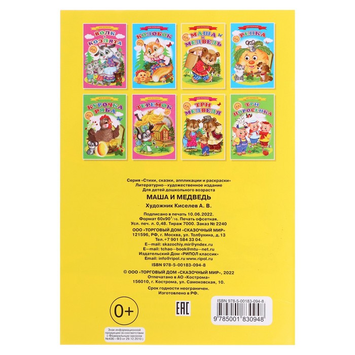 Книга «Маша и медведь» — это классическая русская народная сказка, которая перенесёт малышей в мир добра, приключений и ярких эмоций. Мягкий переплёт и красочные иллюстрации делают её идеальной для детей от 3 лет.